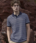 Tag-free heavyweight Jersey polo shirt. Stretch ribbed collar and cuffs. Single Jersey collar stand and under placket. 3-button placket, with navy buttons. Twin-needle stitching at hem. Herringbone tapes side vents.