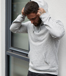 80% certified organic combed cotton/20% recycled polyester.* Pre-shrunk. Drop shoulder style. Two panel lined hood with self colour drawcord. Metal eyelets and drawcord tips. Ready to dye has polyester stitched drawcord tips in gunmetal colour. Taped neck. Front pouch pocket. Ribbed cuffs and hem. Tear out label.