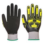 Innovative TPR design combined with a level D cut liner makes for an impact glove with exceptional dexterity, comfort and protection. The TPR pods are bonded directly on to the glove instead of traditional machine stitching which allows the glove to move freely with the hand. Fully dipped nitrile coating offers a secure grip and an exceptional barrier against liquids. Reinforced thumb crotch for extra durability. Works with most touchscreen devices..
