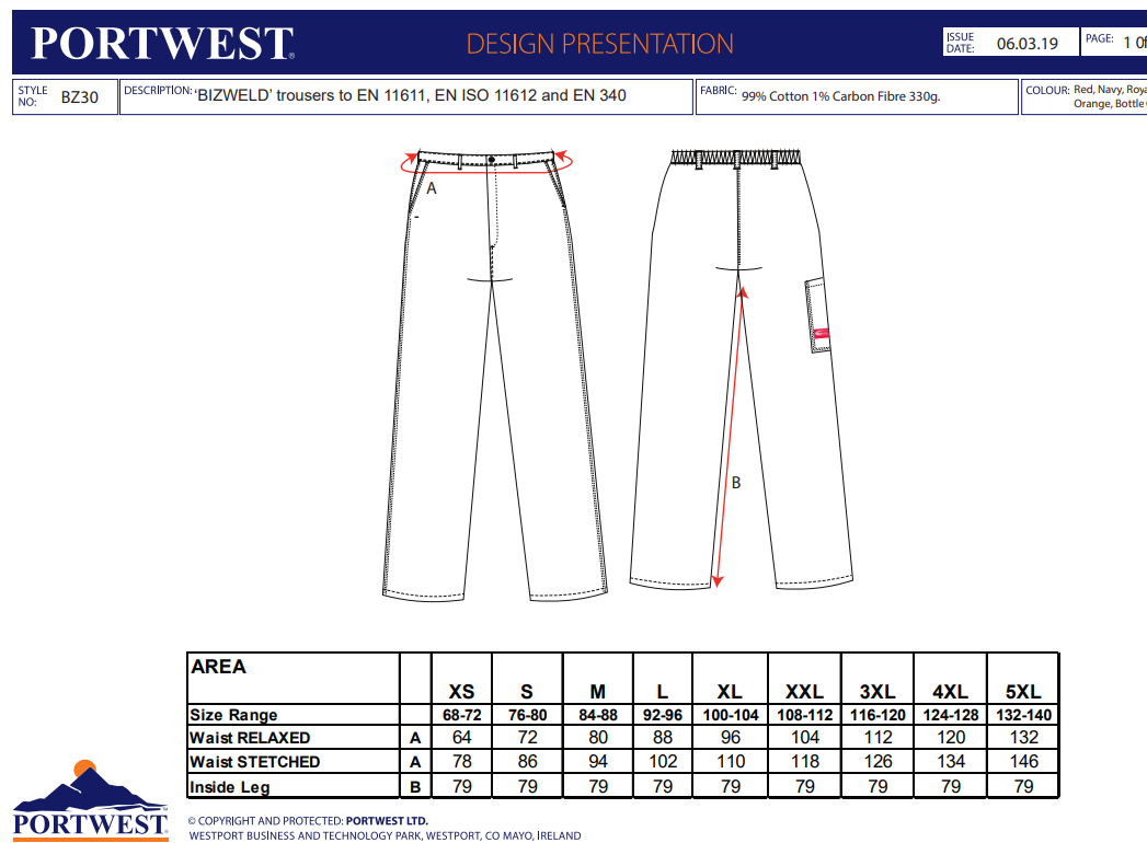 Datasheet - https://documents.portwest.com/datasheet.php?style=BZ30&lang=GB&itemcol=BZ30BKR&facility=902