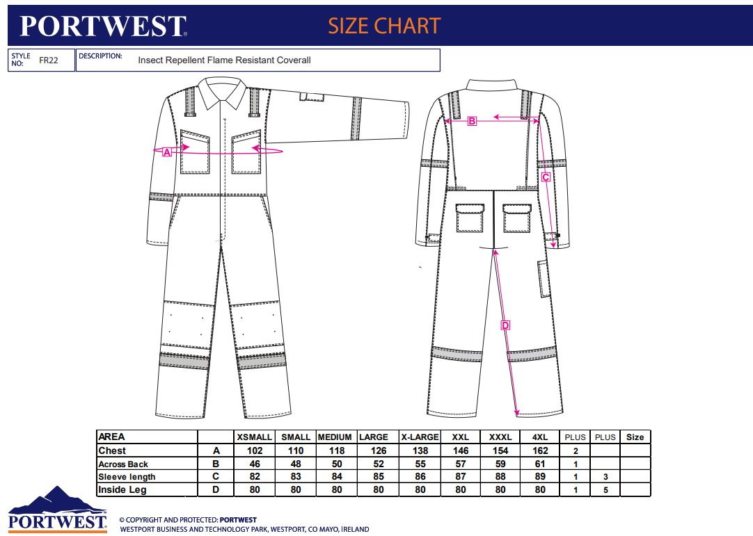 Datasheet - https://documents.portwest.com/datasheet.php?style=FR22&lang=GB&itemcol=FR22NAR&facility=902
