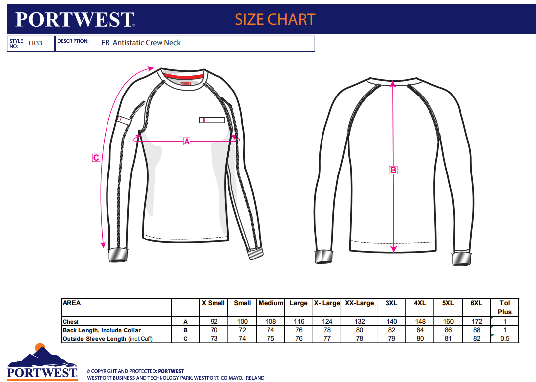 Datasheet - https://documents.portwest.com/datasheet.php?style=FR33&lang=GB&itemcol=FR33NAR&facility=902
