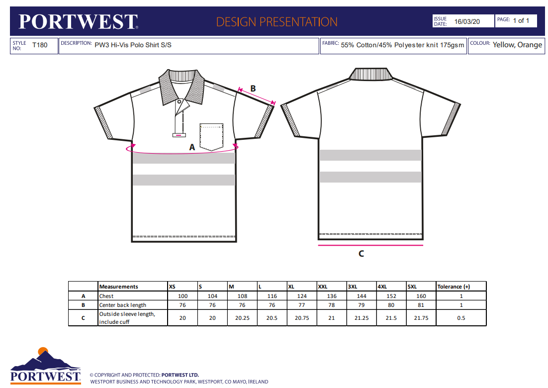 Datasheet - https://documents.portwest.com/datasheet.php?style=T180&lang=GB&itemcol=T180OBR&facility=902