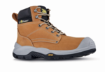 Safety shoes of protection class S3 HRO HI SRC CI with soft water repellent nubuck leather upper and polyurethane toe cap.