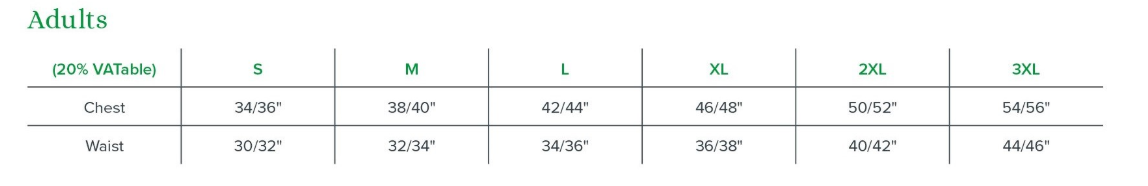 Chest 34 - 36 38 - 40 42 - 44 46 - 48 50 - 52 54 - 56