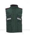 Men’s vest, 8 mm plastic zip with metal pull, with flap fastening and plastic buttons, detachable and/or foldaway shaped hood, grey reflective stripes on the front and back, side vent with gusset and zip, nine outer pockets, two with LOCK SYSTEM, two with zip and reinforced inner, one with a reversible badge holder. Padded, collar, back and lower back warmer in micro-fleece, inner drawstring and zip for easier printing and embroidery.