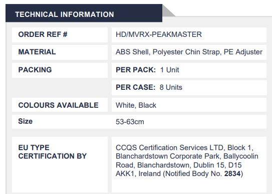 Ultimate Industrial Mavrix-Peakmaster Helmet EN 12492