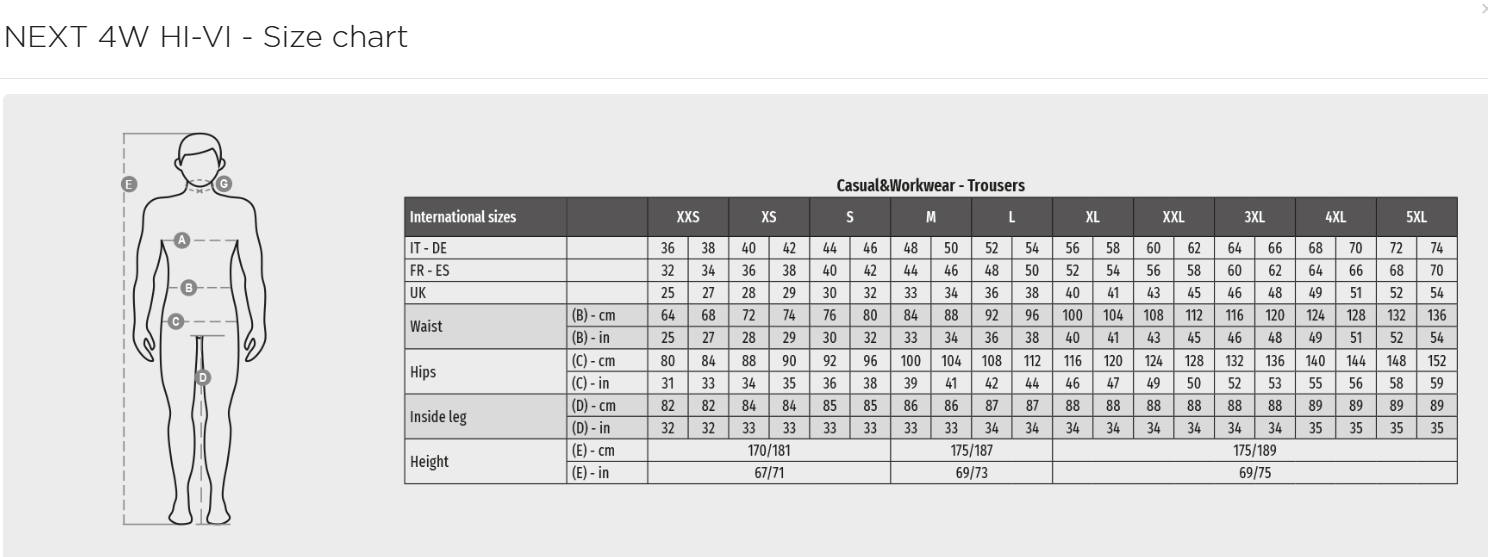 Datasheet - https://www.payperwear.com/cat/gb-en/casual-workwear/trousers/trousers/next4whi-vi