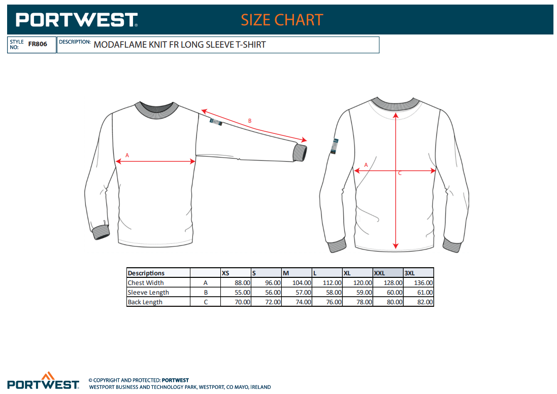 Portwest FR806 - Modaflame Knit FR Long Sleeve T-Shirt FR806